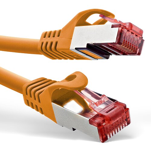 70 x 1m langes oranges Cat.6 S/FTP (PiMf) Patchkabel mit beidseitig vergossenen RJ45-Steckern für zuverlässige Gigabit-Verbindungen bis 1 Gbit/s bei Frequenzen bis 250 MHz. Die hochwertige S/FTP-Doppelschirmung (Geflecht- und Folienabschirmung pro Aderpaar) sorgt für optimalen Schutz vor elektromagnetischen Störeinflüssen. Mit AWG27-Kupferlitzen, PVC-Mantel und angespritztem Rastnasenschutz bietet das Kabel hervorragende Signalqualität und lange Lebensdauer ? ideal für professionelle Netzwerkumgebungen.