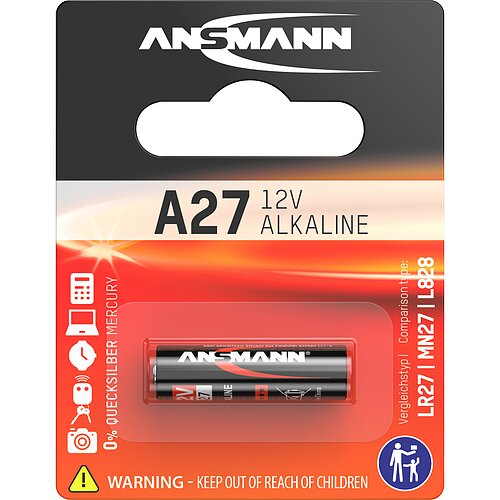 Die Ansmann A27 ist auch bekannt als: E27A V27A V27PX V27GA L728 L828 MN27 G27A GP27A WE27A CA22 UM27A LR27A K27A 27AE A27S P27GA EPX27 KX27 RPX27 HS3 NR43 EL812 EL8212 R27A