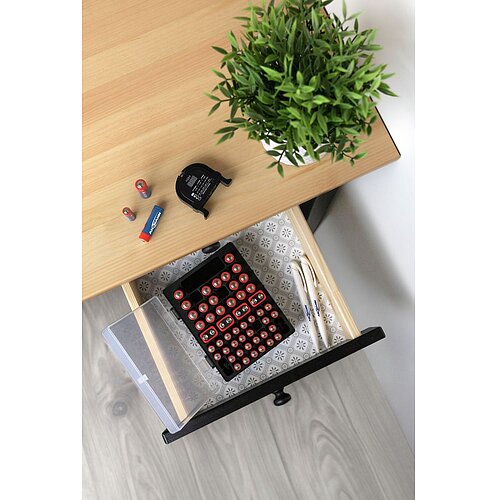 - Platz für 44 Batterien - 24x AA, 16x AAA, 4x 9V Block