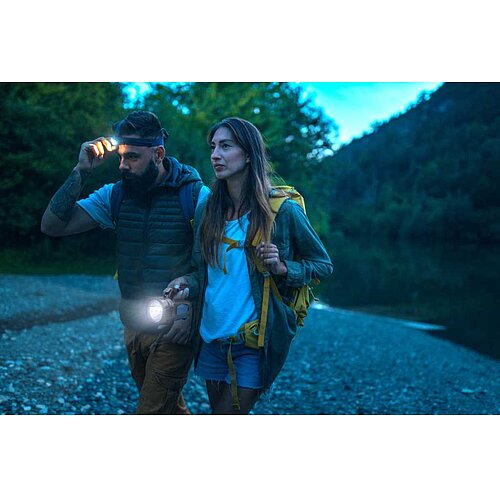 - Leuchtmodi: Hauptlicht an/aus, Arbeitslicht an/aus über 4-fach Klicksteuerung
