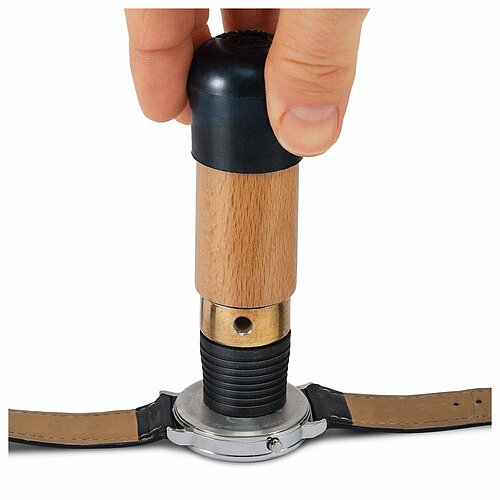 | Der Bergeon 2533 gehäuseöffner mit Gummieinsatz ist ein Nützliches Werkzeug für das öffnen und schließen von gehäusen mit Schraubböden. Der Gummistempel saugt sich durch Handdruck am Boden fest, ohne diesen zu beschädigen. Der Einsatz des Gummieinsatzes ermöglicht eine schonende und schonende Handhabung des gehäuses. Der gehäuseöffner eignet sich für den Einsatz bei einer Vielzahl von Uhrenmodellen und ist ein unverzichtbares Werkzeug für jeden Uhrmacher oder Uhrenliebhaber. | |