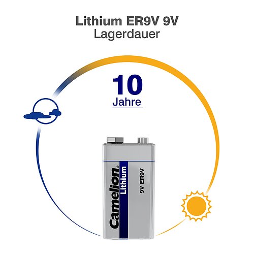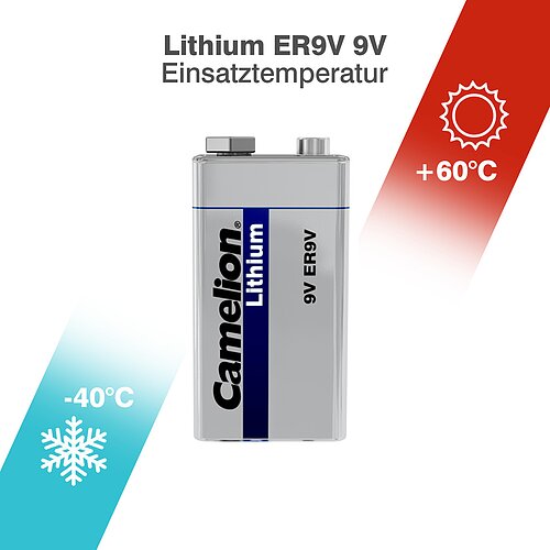 Camelion P7 Lithium 9V Blockbatterie - leistungsstark, leicht und für anspruchsvolle Anwendungen entwickelt. Mit 1200 mAh Kapazität und stabilem Spannungsverlauf eignet sie sich für Rauchmelder, Messgeräte, Kameras und medizinische Geräte. Der weite Temperaturbereich von -20 °C bis +60 °C macht sie ideal für Outdoor und Notfallausrüstung.