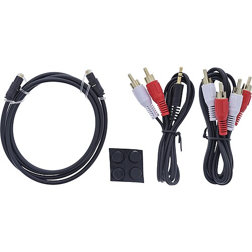 - Ausgänge: Toslink (optisch), 2x Cinch Stereo