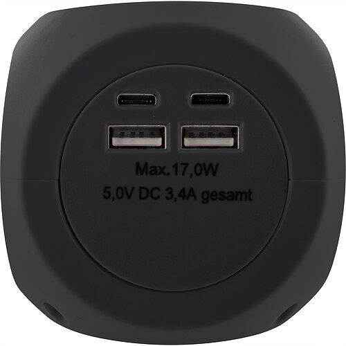 - Anschlüsse: 3x Schutzkontakt mit Berührungsschutz, 2x USB-C, 2x USB-A