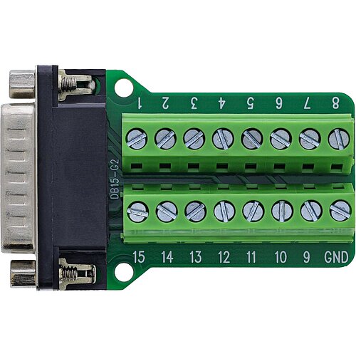 Der Inline® D-Sub 15 Terminalblock mit Stecker ermoeglicht die loetfreie Verdrahtung serieller und Steuersignale ueber Schraubklemmen mit Druckplatte. Die 2-reihige D-Sub-15 Stecker ist mit einem Befestigungsgewinde (UNC #4-40) ausgestattet und sorgt fuer eine sichere, vibrationsfeste mechanische Fixierung. Ideal fuer Automatisierung, Maschinenbau, Pruefplaetze, Signalverteilung sowie Service- und Diagnoseanwendungen.