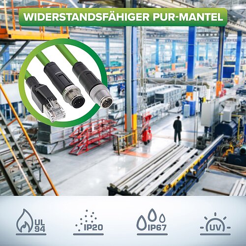 - Besonderheiten: Schleppkettentauglich, torsionsbeständig, PoE bis 90 W (802.3bt)