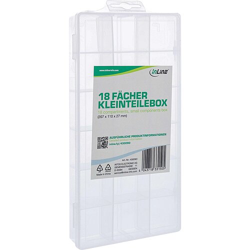 Produktinformationen "InLine® Kleinteilebox, 18 Fächer, Abmessungen: 207x110x27mm, transparent"