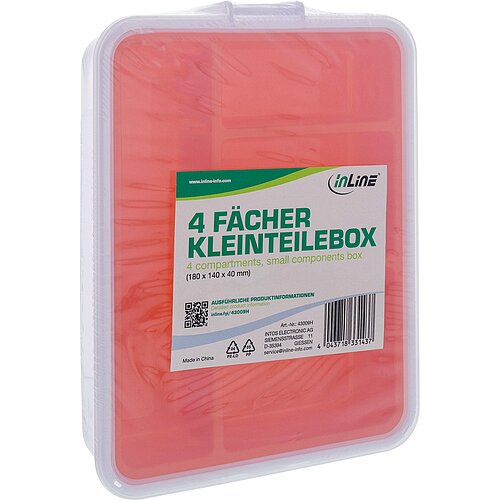 Produktinformationen "InLine® Kleinteilebox, 4 Fächer, Abmessungen: 180x140x40mm, orange"