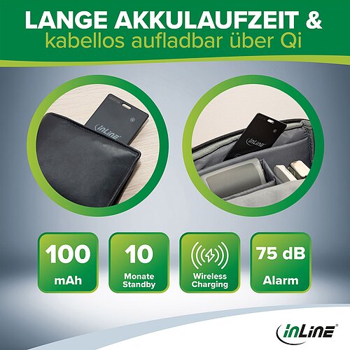 InLine® Wallet Finder, smarte Karte für die Geldbörse, Qi-Aufladung,100mAh, IPX5