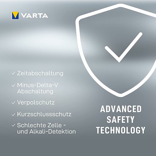 | Sicherheitsmerkmale | - Timer-Abschaltung - Minus-Delta-V-Abschaltung - Erkennung schlechter Zellen und Alkali-Batterien - Schutz vor falscher Polarität - Kurzschlussschutz - LCD-Anzeige für mehr Komfort - Einzelschachtladung - Intelligente Abschaltung - Zusätzlicher USB-Ausgang um externe Geräte zu laden |