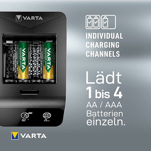 Produktinformationen "NiMH Akku LCD+ Smart Ladegerät 1,6A Varta 57684 für AA Mignon AAA Micro USB"