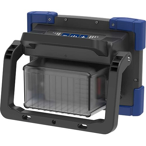Die XCell Work 45W Multi Arbeitsleuchte ist mit ihrem kompakten Design und den vielseitigen Einsatzmöglichkeiten die ideale Lichtquelle für leistungsstarke Beleuchtung. Dem Benutzer wird ermöglicht, das Licht genau dorthin zu richten, wo er es braucht. Sie ist robust und widerstandsfähig, perfekt für die anspruchsvolle Arbeitsumgebung. Durch die einklappbare Form ist ein einfacher Transport möglich. Die Arbeitsleuchte ist in vier Stufen dimmbar (100%, 75%, 50%, 25%). Dank der stabilen Batterieabdeckung ist sie staub- und spritzwassergeschützt (IP54). Das robuste Gehäuse besteht aus Kunststoff, die vier Ecken haben einen Gummi-Schutz. Durch die Einsatzmöglichkeit von Ersatzakkus mit verschiedenen Kapazitäten lässt sich die Nutzungszeit entsprechend erhöhen. Maximale Flexibilität mit dem Akku-System Ihrer Wahl! Adapter aufstecken, passenden Akku einstecken und loslegen! Kompatibel mit Akkusystemen von Makita, Bosch, DeWALT, Milwaukee, FESTOOL, FLEX und Metabo.